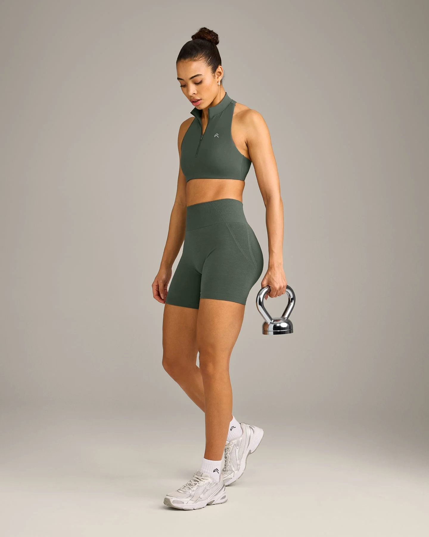 EffortlessLift™ Seamless Mid Rise Shorts with Grey Logo | Dark Khaki